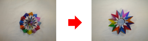 花火をイメージしたものです。左のものを開くと右のようになります。