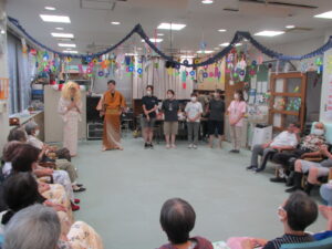 職員は数か月前から、踊りや時代劇の練習を行っていましたが、皆さんがとても喜んでいただけたので良かったです!!